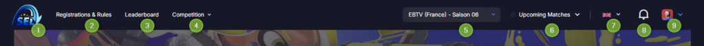 5- Select your competition. Pick the League that interests you. This affects the competition homepages (Point 2) as well as match scheduling, the marketplace, the rules (Point 4) and the upcoming matches (Point 6), which are contextual to the selected competition.